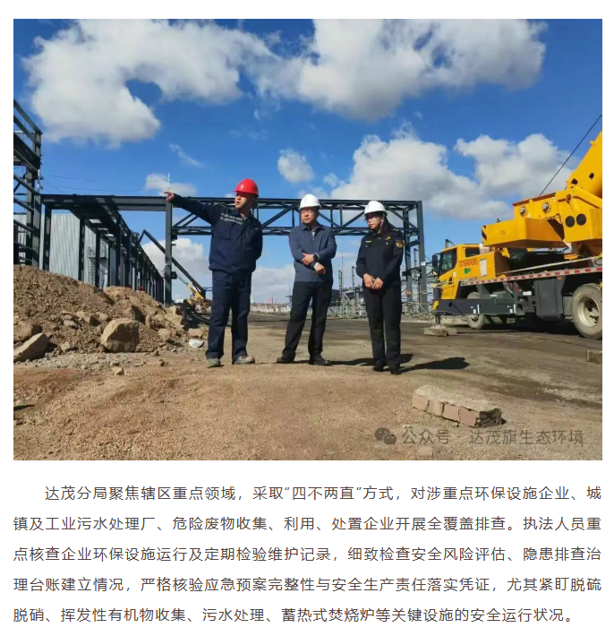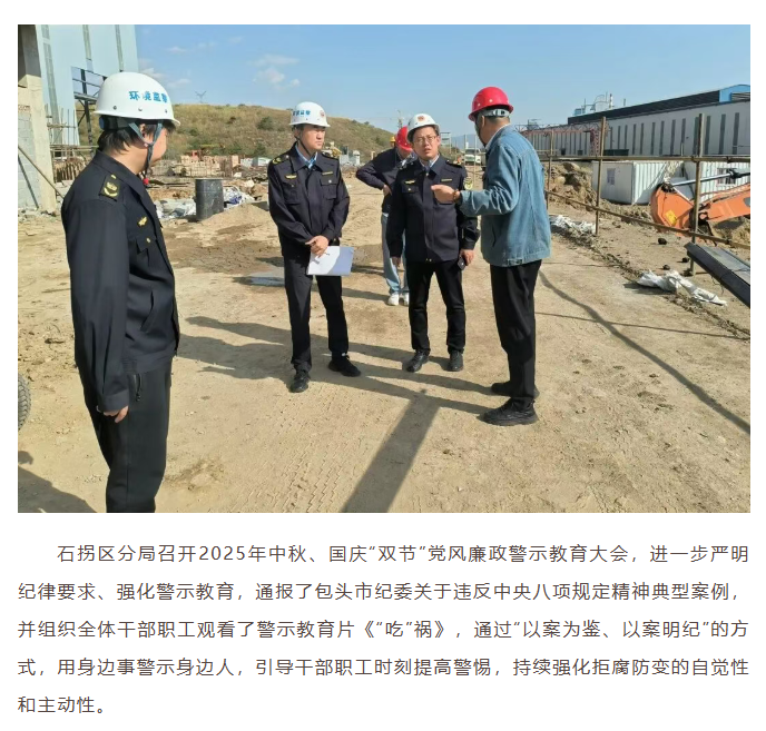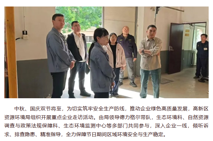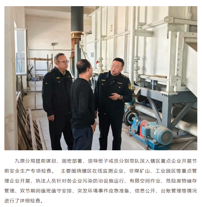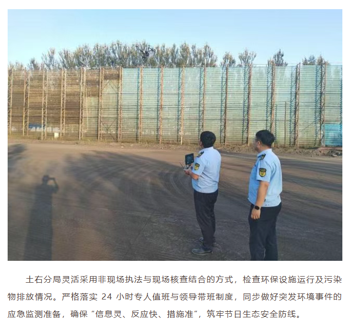 国庆中秋双节将至,各旗县区生态环境分局不放松,聚焦重点领域开展安全检查和隐患排查,压实值班值守;同步推进廉政教育,严守纪律红线,确保节日环境安全、风清气正。