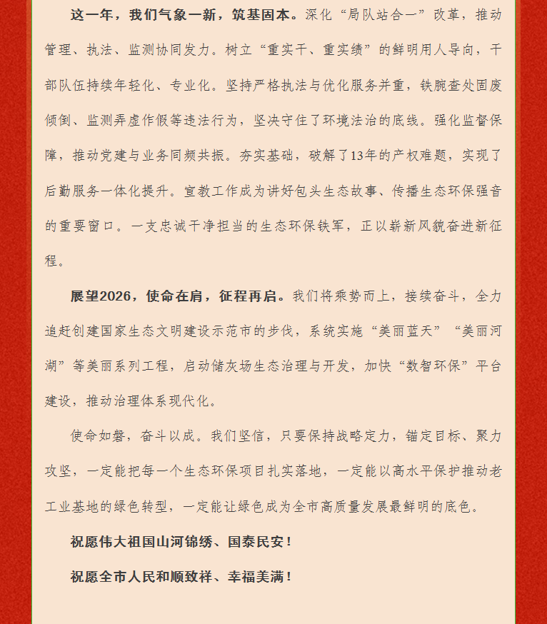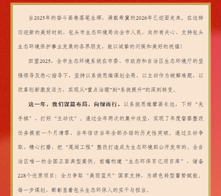 2026年包头市生态环境局新年贺词