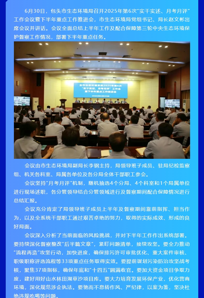 全市生态环境系统召开2025年第6次“实干实述、月考月评”工作会议暨下半年重点工作推进会