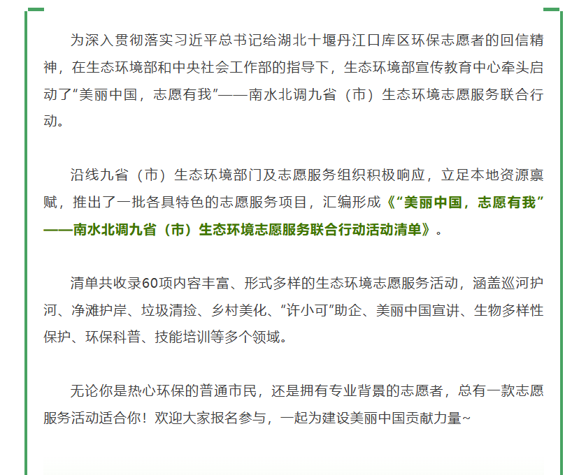 您有新的生态环境志愿服务清单,请查收!