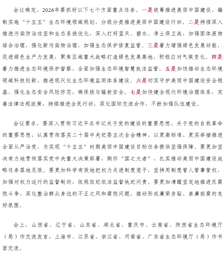 全国生态环境保护工作会议在京召开