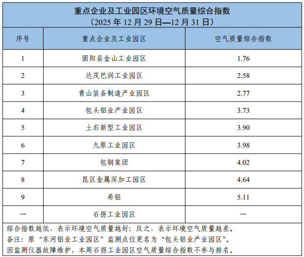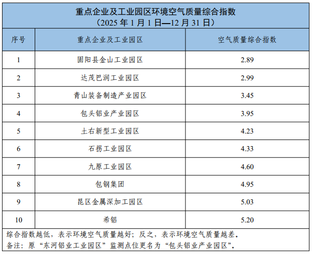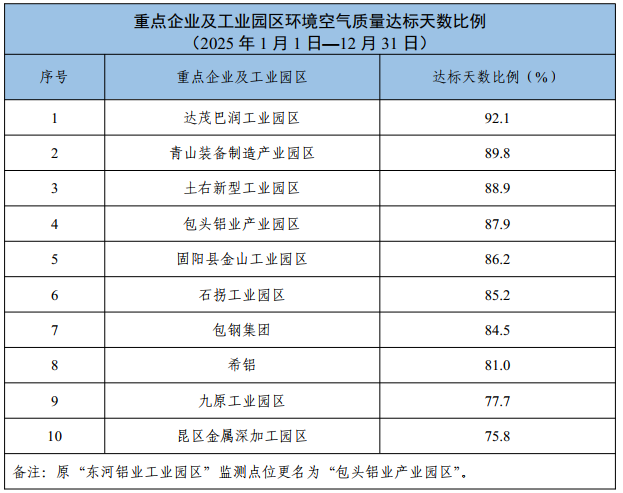 包头市重点企业及工业园区环境空气质量公示