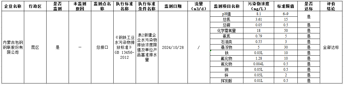(内蒙古包钢钢联股份有限公司)2024年监督性执法监测情况公示